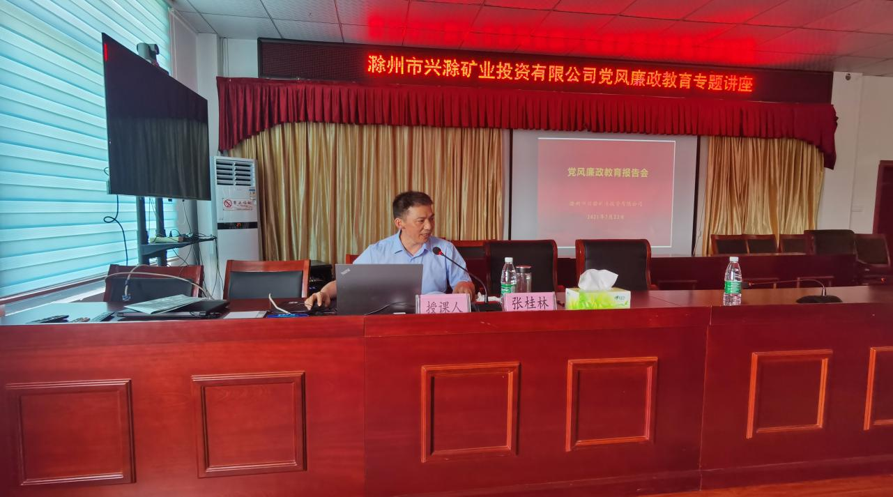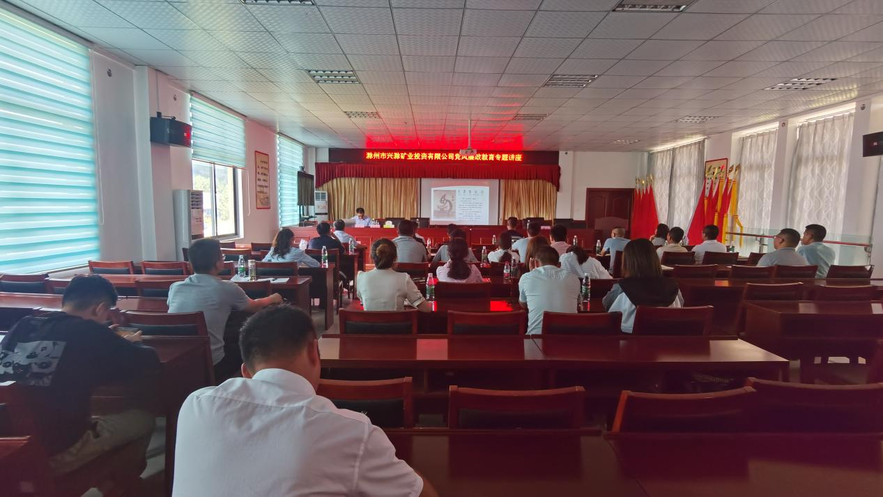 為進(jìn)一步推深做實(shí)黨史學(xué)習(xí)教育,切實(shí)加強(qiáng)公司黨風(fēng)廉政建設(shè)和反腐敗工作,促進(jìn)黨風(fēng)廉政教育在基層一線落地生根,7月23日,市礦投公司邀請市紀(jì)委監(jiān)委駐市財政局紀(jì)檢監(jiān)察組副組長張桂林赴興明礦業(yè)調(diào)研指導(dǎo)并作黨風(fēng)廉政教育專題講座。公司經(jīng)營層及相關(guān)工作人員約30余人聆聽了講座。