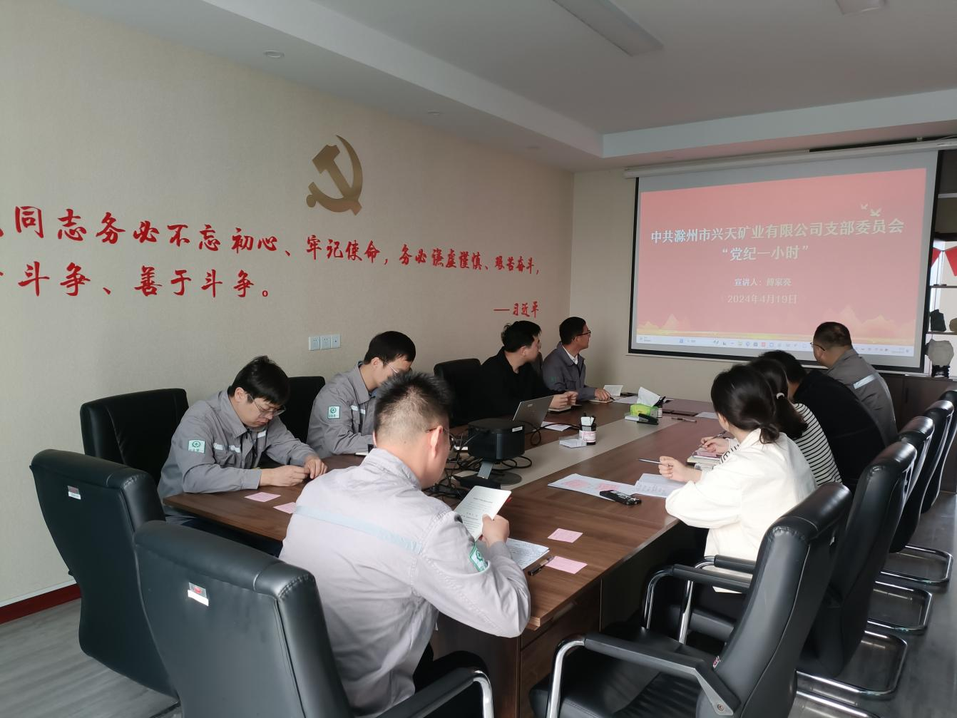 為扎實(shí)開展黨紀(jì)學(xué)習(xí)教育工作,4月19日,興天礦業(yè)黨支部組織召開“黨紀(jì)一小時(shí)”活動(dòng),支部紀(jì)檢委員傅家亮同志為參會(huì)人員深入解讀新修訂的《中國共產(chǎn)黨紀(jì)律處分條例》。