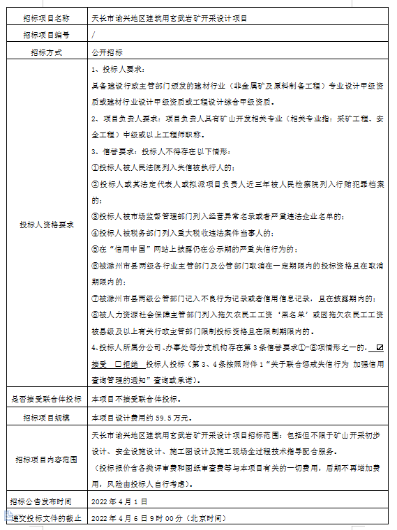 天長(zhǎng)市諭興地區(qū)建筑用玄武巖礦開(kāi)采設(shè)計(jì)項(xiàng)目招標(biāo)公告