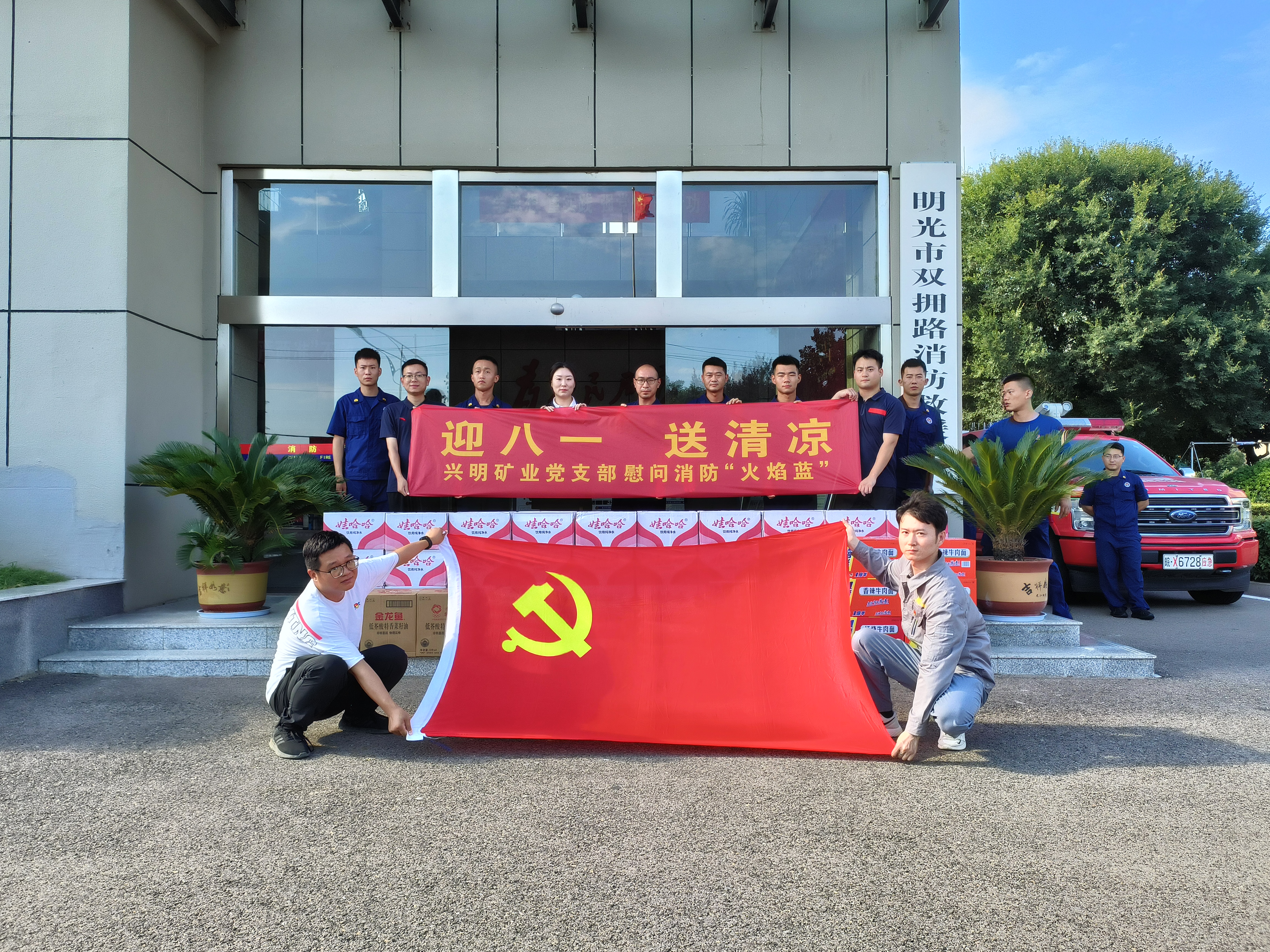 “八一”前夕,興明礦業(yè)黨支部帶著滿滿的關(guān)懷與敬意,走進(jìn)明光市消防救援大隊(duì)開(kāi)展“送清涼”活動(dòng),為消防員們送上了礦泉水、方便面等物資。